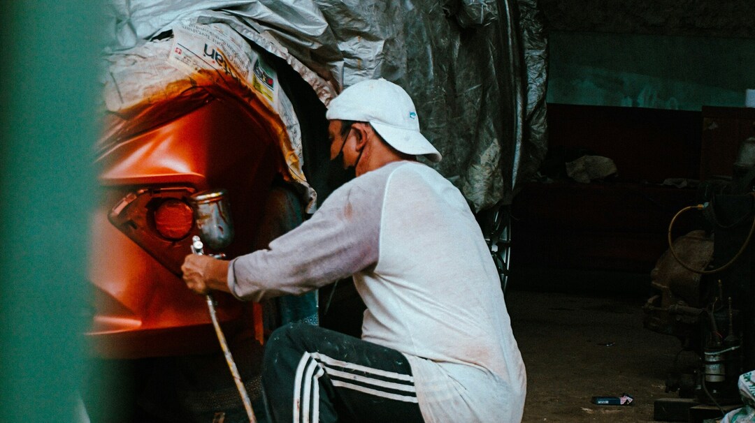 特に乾燥の工程は、仕上がりを左右する重要なポイントです。1液,2液どちらもトップコート時の2回目を吹く時に、表面がシワシワになったりと、下地の塗料の相性に合わせる必要があります。