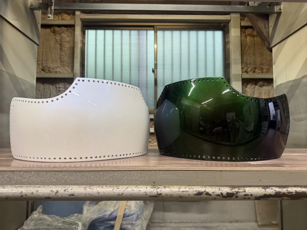 なおプロがヘルメットを塗る場合は、パーツのラインに沿って色が変化するよう、吹き付けるスプレーの角度を意図的に変えることもあります。