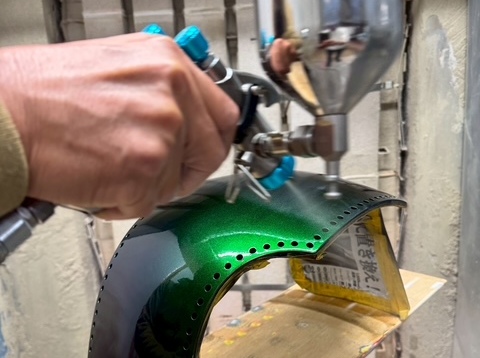 例えばグロスブラックでは2回目で均一に発色させ、3回目に立体感を極限まで引き出すよう、部分的に霧を飛ばす重ね方をします。